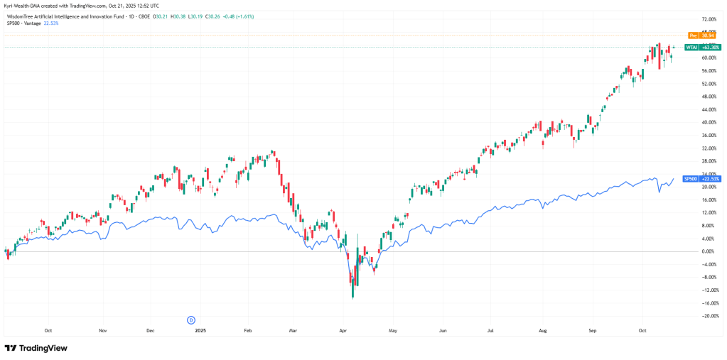 AI’s the new electricity, apparently. But the WisdomTree Artificial Intelligence & Innovation ETF (WTAI) is already up around +63% YTD, while the S&P 500’s up about +22%.