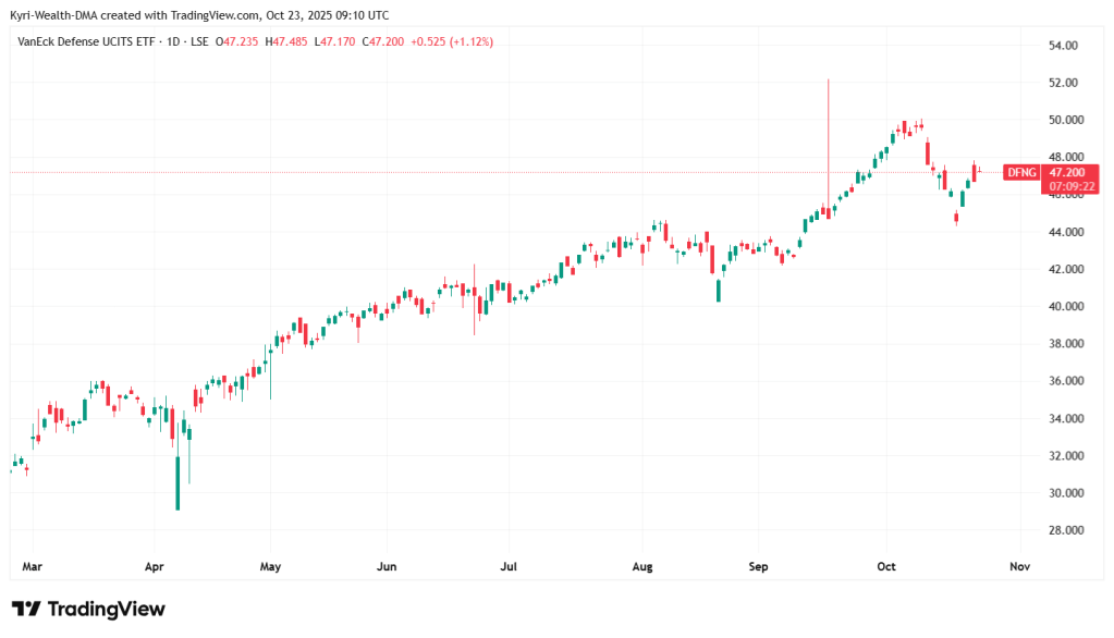 DFNG – VanEck Defence UCITS ETF (LSE): £47.20 | YTD +72%